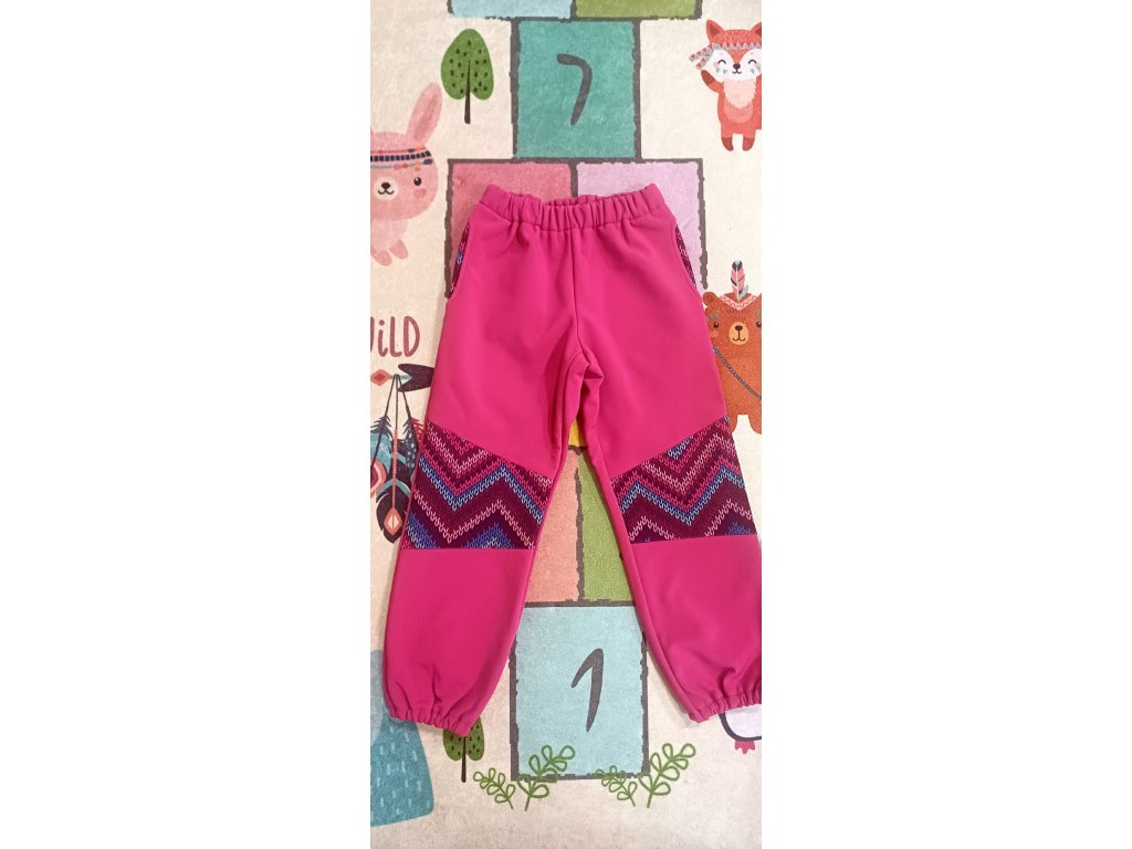 Detské softshellové nohavice s fleecom je do určitej miery vodeodolný a chráni pred vetrom. Nohavice sú voľnejšieho strihu, pás a dolný okraj nohavíc vyhotovený do gumy. Predné diely pod kolenami a na vreckách obzvlášnil vzorovaný softshell.